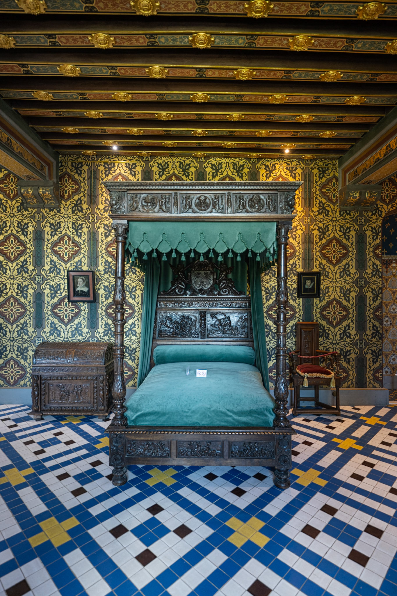 The Queen’s Chamber, where Catherine de Médicis died on 5 January 1589, and a wood-panelled oratory complete this floor.