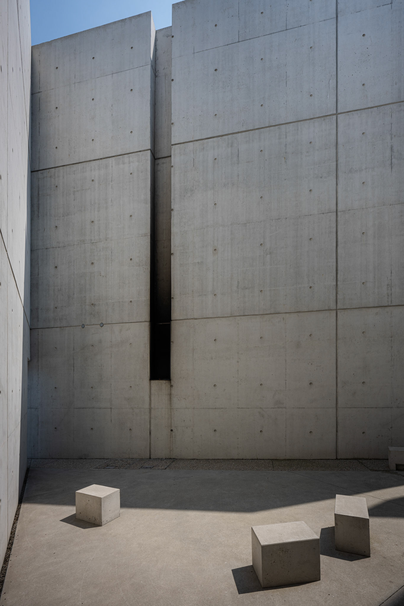 Six photographs of holocaust sites by Canadian photographer Edward Burtynsky are shown as murals on the concrete walls that vary in height and inclination.